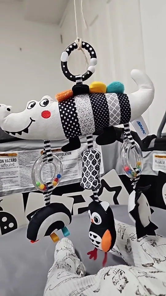 Baby Rattle Hanging Toy Carseat Black & White Rattle Hanging Activity Stroller Toy for Newborns Boys and Girls Gifts Crocodile C